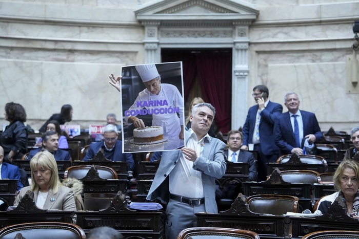 El diputado socialista Esteban Paulón protagonizó un momento destacado en la sesión de este miércoles al ingresar al recinto con un cartel dirigido a Mauricio Macri. En la imagen, el expresidente aparece caracterizado como un ....