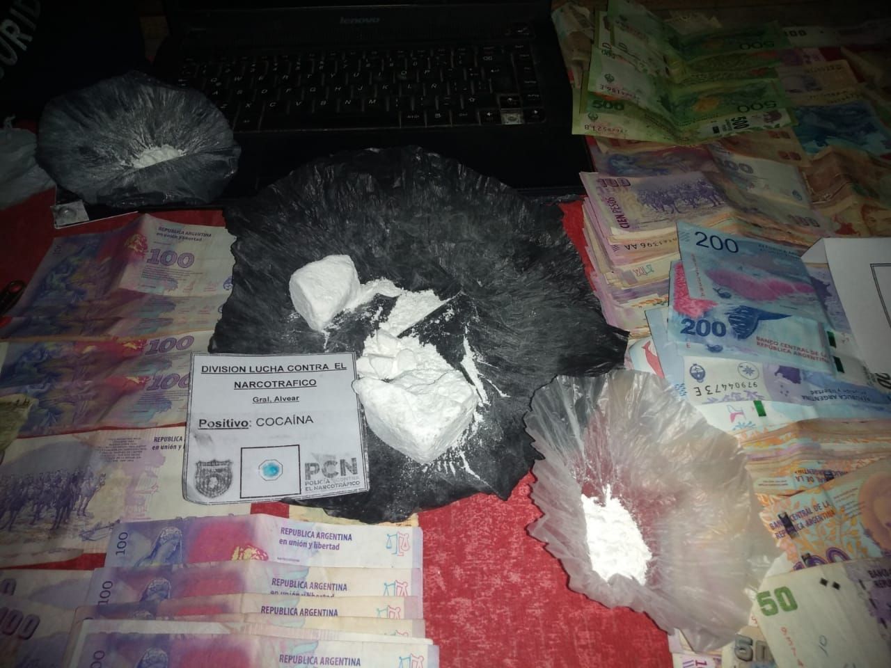Durante el operativo completo, la Policía secuestró un total de siete envoltorios de cocaína (100 gramos), 67 pastillas, más de 36 mil pesos en efectivo, 6 teléfonos celulares, una notebook, dos tabletas electrónicas, objetos de corte con restos de cocaína, entre otros elementos de interés para la causa.