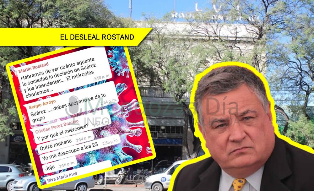 Ahora ya sin trabajo, la procesión y ruego supera incluso las promesas de muchos fieles. Martin arremetió nuevamente contra Sarale solicitando ocupar el cargo de prensa de la provincia en el Sur (aclaramos que ya le rogo a medio San Rafael). Pero esto puede ser entendible. Lo que sigue siendo imperdonable es que mantenga su alta traición a quien puede ser el que el dé de comer, y en este caso, el Gobernador Suarez. Acá en exclusivo de “Mendoza al día” mostramos una captura de pantalla de un grupo de WhatsApp con más de 100 periodistas sanrafaelinos donde Rostand ataca al Gobernador después de una decisión que tomo sobre la pandemia y también se lee la sorpresa de varios periodistas como Sergio Arroyo y Cristian Barceló que quedan atónitos por lo que escribe el DESLEAL locutor marcándole que “teóricamente es del grupo del Gobernador y debe defenderlo”.